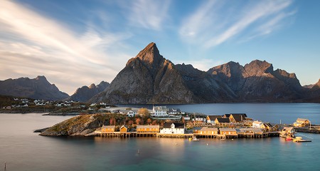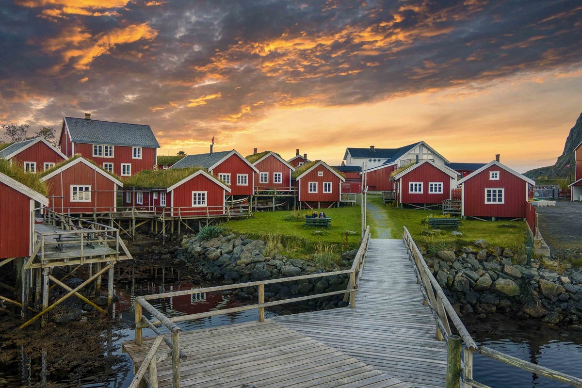 評選為挪威最美村莊,這片曾登上雜誌封面的美景,很難想像只是300位居民的小漁村,隨處都是小木屋、碼頭、漁船及當地特色魚屋Rorbuer。