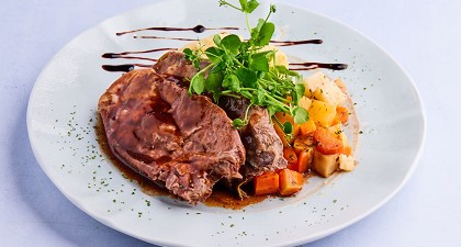 嚴選肉品烹製而成鹹香豬排,搭配佐餐濃湯,味蕾感受到多層次的豐富美味。