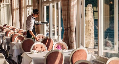玻璃屋中的優雅餐廳,環繞著如夢似幻的景致,映入眼簾宛如仙境。美味料理結合壯麗美景,帶來視覺與味覺的極致享受。