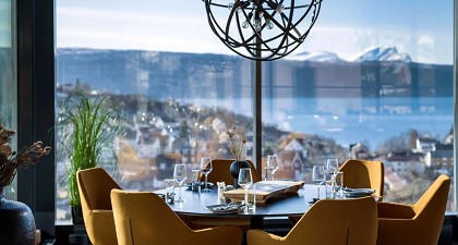 座落於峽灣旁的景觀餐廳,彷彿置身人間仙境般的絕美環境,俯瞰絕美峽灣。