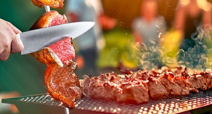 以長鐵叉串起豪邁的新鮮肉品,在炭火上炙燒,是特色的燒烤料理,充滿異國風情,鮮美的大塊原肉,滿足挑剔的味蕾。