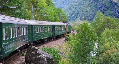 世界著名的三大觀景火車,也是全世界最險峻的火車之旅,有挪威縮影的美稱,沿途自然的縱谷與瀑布仿如人間仙境。松恩峽灣,綿延200多公里,末端處也是歐洲最狹窄之峽灣,兩岸山壁緊聯相距咫尺,因地型獨特及雄偉的景觀,為挪威峽灣最壯麗峽灣,聯合國已將這峽灣列為世界自然遺產。