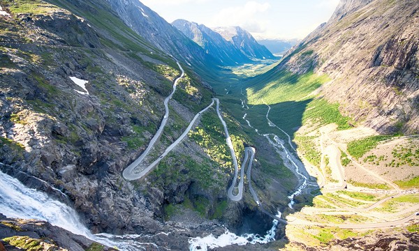 精靈之路是一條令人驚顫的U形急轉彎道路,坡度為1:12,並且也會停在險峻陡峭的山路中觀賞STIGFOSSEN瀑布壯觀的道路景觀,11個從岩石中劈出來的巨大彎道,令人嘆為觀止。