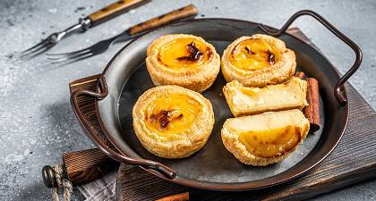 蛋塔歷史可追溯回15世紀,由修道院僧侶們利用蛋黃製作而成。正宗葡式蛋撻,外層為奶油酥皮、內餡則是濃郁滑順的蛋奶凍,其特點是其表面呈輕微焦糖狀,特別推薦給喜歡吃奶味感重蛋塔的旅人。